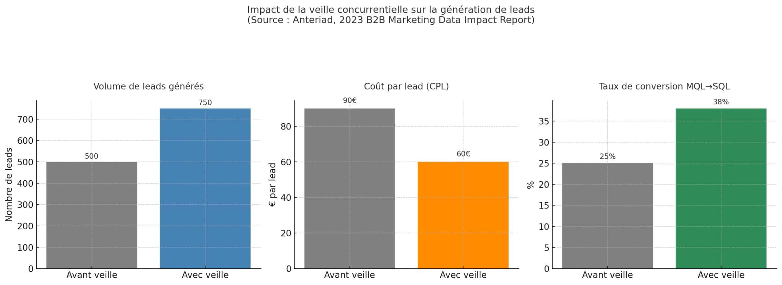 Ces graphiques indiquent que la veille permet d’améliorer la rentabilité des actions commerciales et webmarketing.
