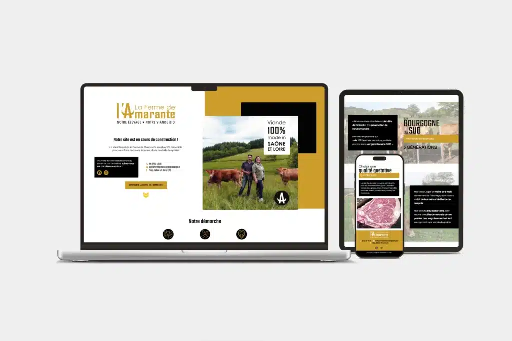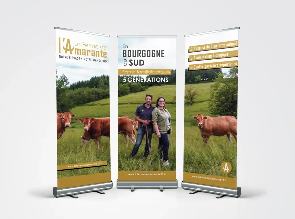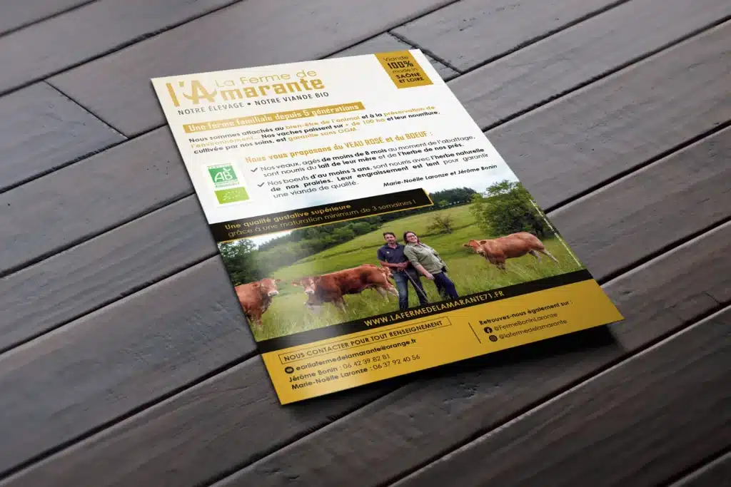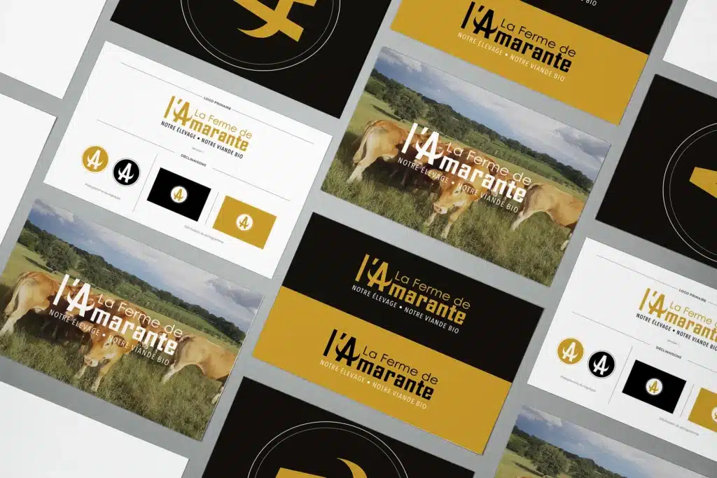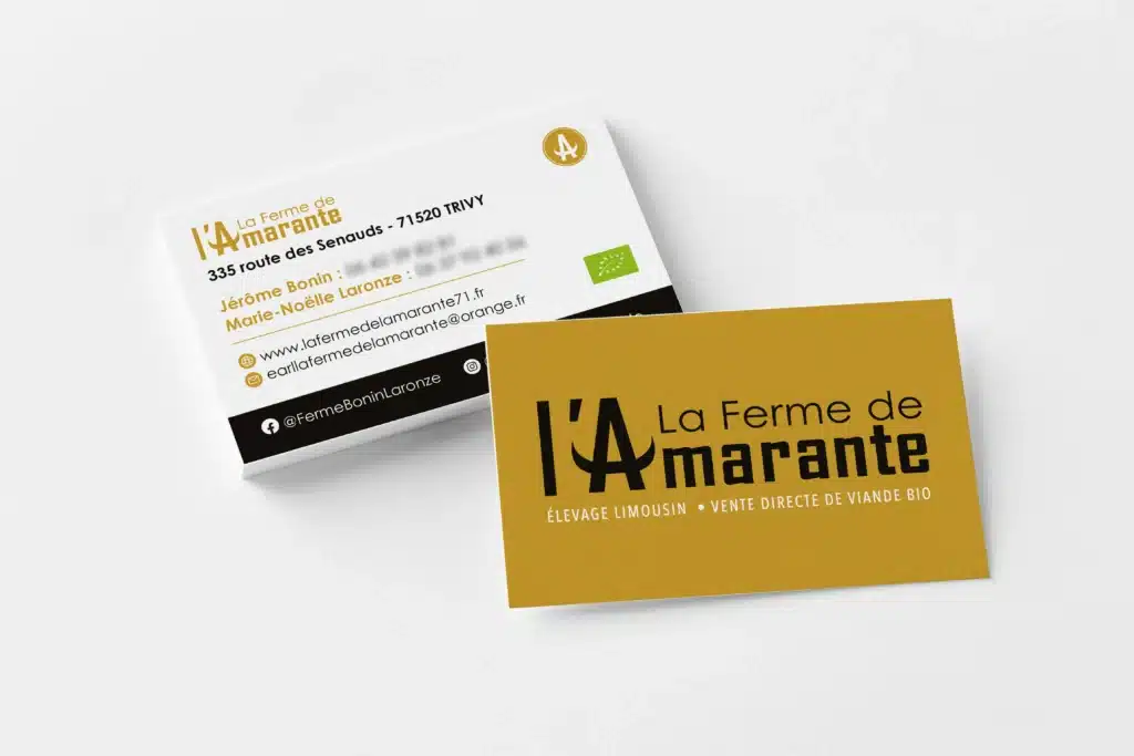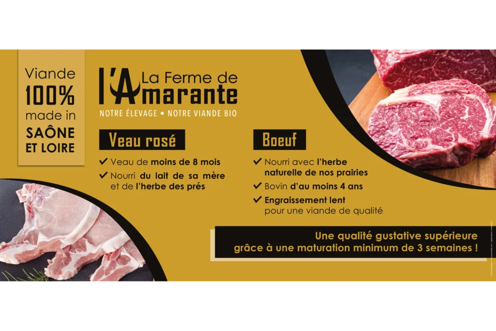 Ferme familiale depuis 5 générations en Bourgogne du Sud, la démarche de la Ferme de l’Amarante repose sur 3 piliers : le respect du bien-être animal, l’alimentation biologique et la vente en circuit court. Jusque là sans identité graphique, la Ferme de l’Amarante nous confie depuis 2022 la création son identité visuelle et le développement de ses supports de communication.
